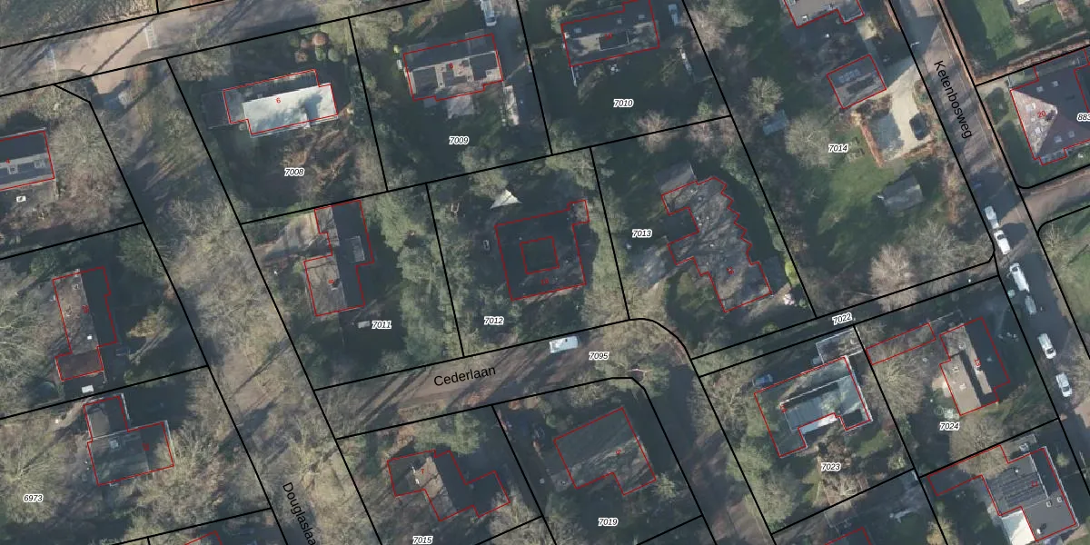 Het perceel waarop Cederlaan 18 staat heeft een oppervlakte van 1004 m². Dit is een zeer groot perceel. De perceeloppervlakte wordt geregistreerd door het Kadaster. Gedetailleerde informatie over de maten van dit perceel kunt u vinden in het rapport Kadastrale kaart met maatvoering van Cederlaan 18.