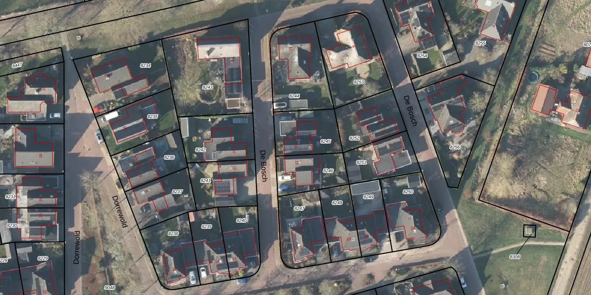 Het perceel waarop De Bosch 13 staat heeft een oppervlakte van 325 m². Dit is een groot perceel. De perceeloppervlakte wordt geregistreerd door het Kadaster. Gedetailleerde informatie over de maten van dit perceel kunt u vinden in het rapport Kadastrale kaart met maatvoering van De Bosch 13.