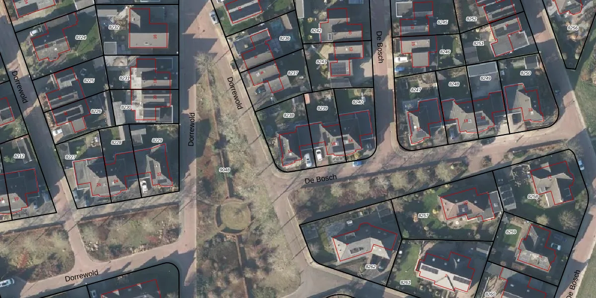 Gebruik de zoekbalk of klik op een perceel voor informatie over de adressen binnen dit perceel.