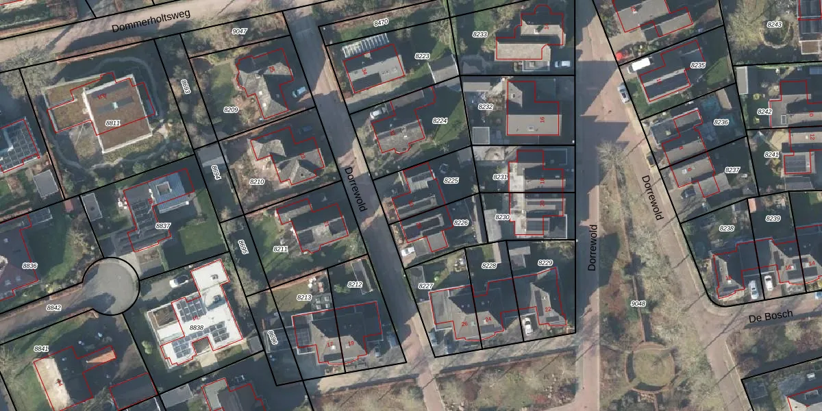 Dorrewold 30 is gelegen op kadastraal perceel GSL01E8225. Deze kadastrale aanduiding is uniek en wordt gebruikt door het Kadaster om eigendomsrechten en andere zakelijke rechten vast te leggen. Het perceel maakt onderdeel uit van de kadastrale gemeente Gorssel.