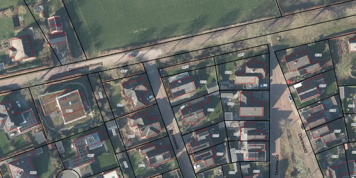 Het perceel waarop Dorrewold 34 staat heeft een oppervlakte van 474 m². Dit is een groot perceel. De perceeloppervlakte wordt geregistreerd door het Kadaster. Gedetailleerde informatie over de maten van dit perceel kunt u vinden in het rapport Kadastrale kaart met maatvoering van Dorrewold 34.