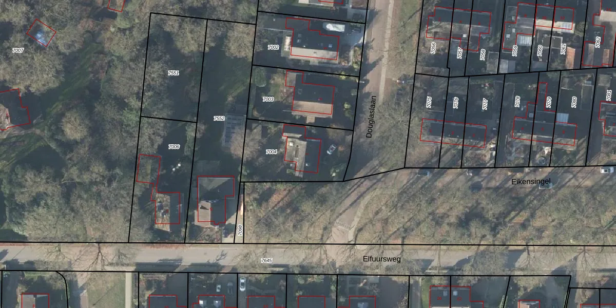 Het perceel waarop Douglaslaan 1 staat heeft een oppervlakte van 640 m². Dit is een groot perceel. De perceeloppervlakte wordt geregistreerd door het Kadaster. Gedetailleerde informatie over de maten van dit perceel kunt u vinden in het rapport Kadastrale kaart met maatvoering van Douglaslaan 1.