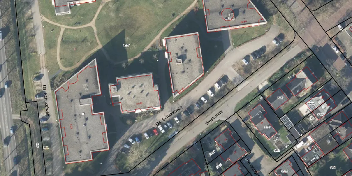 Het perceel waarop Ds. Schakelweg 39 staat heeft een oppervlakte van 1,8 ha. Dit is een zeer groot perceel. De perceeloppervlakte wordt geregistreerd door het Kadaster. Gedetailleerde informatie over de maten van dit perceel kunt u vinden in het rapport Kadastrale kaart met maatvoering van Ds. Schakelweg 39.