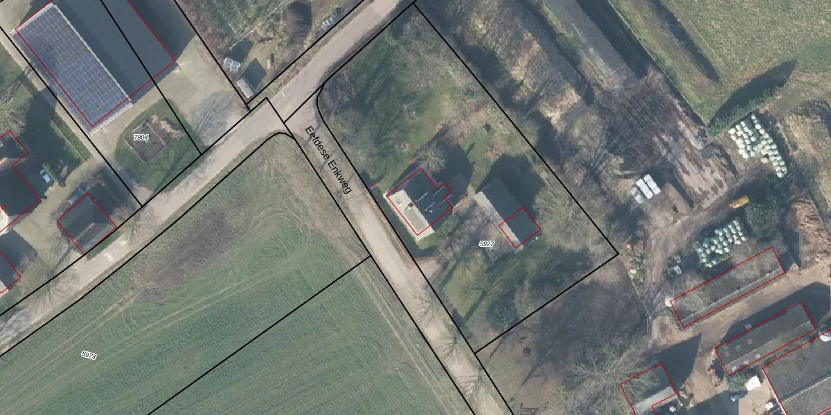 Eefdese Enkweg 1 is gelegen op kadastraal perceel GSL01E5927. Deze kadastrale aanduiding is uniek en wordt gebruikt door het Kadaster om eigendomsrechten en andere zakelijke rechten vast te leggen. Het perceel maakt onderdeel uit van de kadastrale gemeente Gorssel.