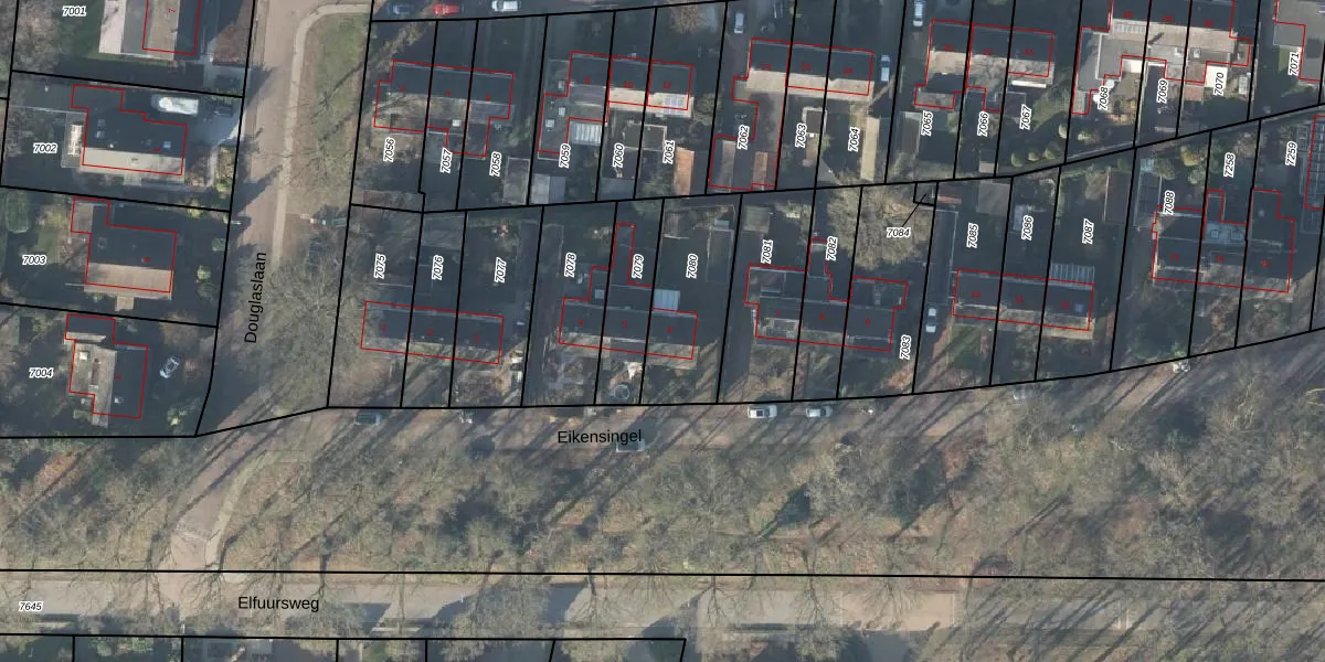 Gebruik de zoekbalk of klik op een perceel voor informatie over de adressen binnen dit perceel.