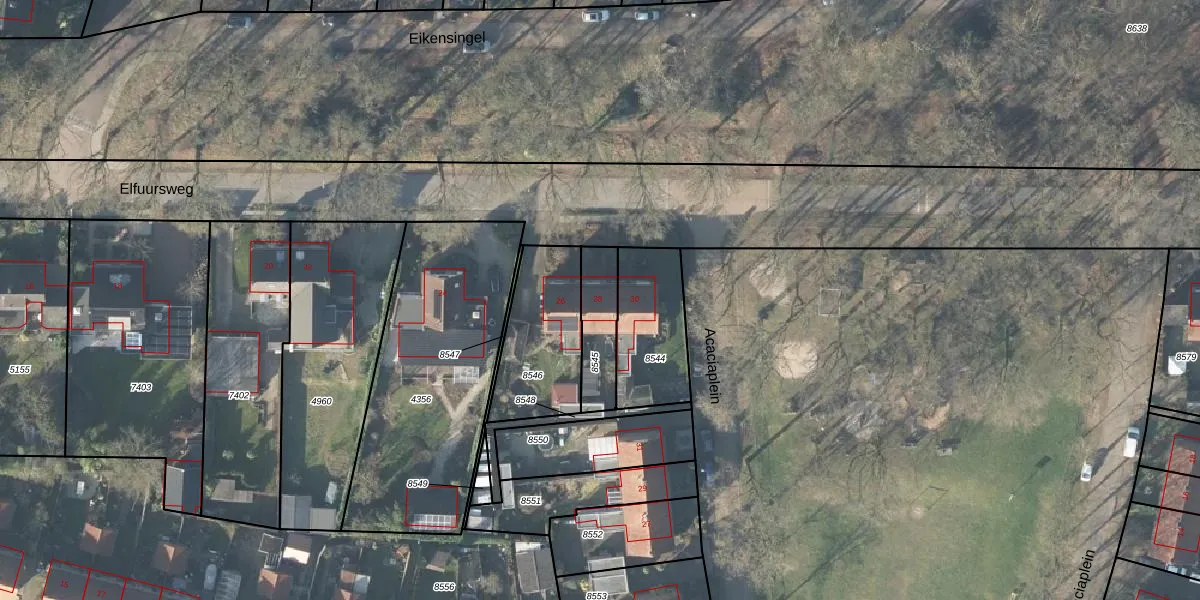 Het perceel waarop Elfuursweg 28 staat heeft een oppervlakte van 163 m². Dit is een middelgroot perceel. De perceeloppervlakte wordt geregistreerd door het Kadaster. Gedetailleerde informatie over de maten van dit perceel kunt u vinden in het rapport Kadastrale kaart met maatvoering van Elfuursweg 28.