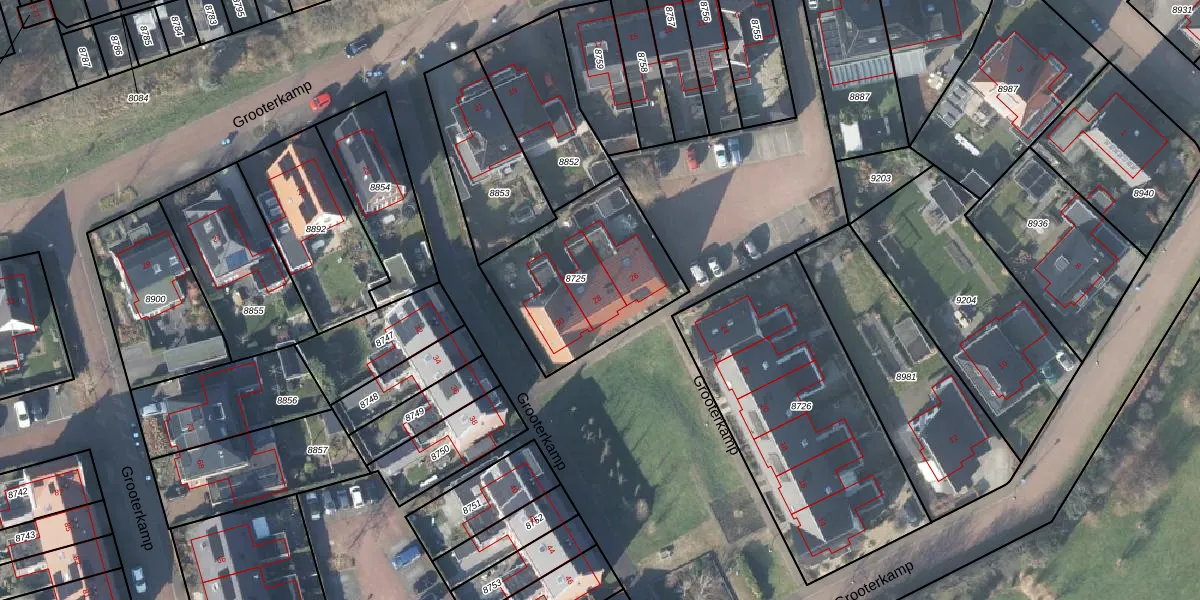Het perceel waarop Grooterkamp 28 staat heeft een oppervlakte van 624 m². Dit is een groot perceel. De perceeloppervlakte wordt geregistreerd door het Kadaster. Gedetailleerde informatie over de maten van dit perceel kunt u vinden in het rapport Kadastrale kaart met maatvoering van Grooterkamp 28.