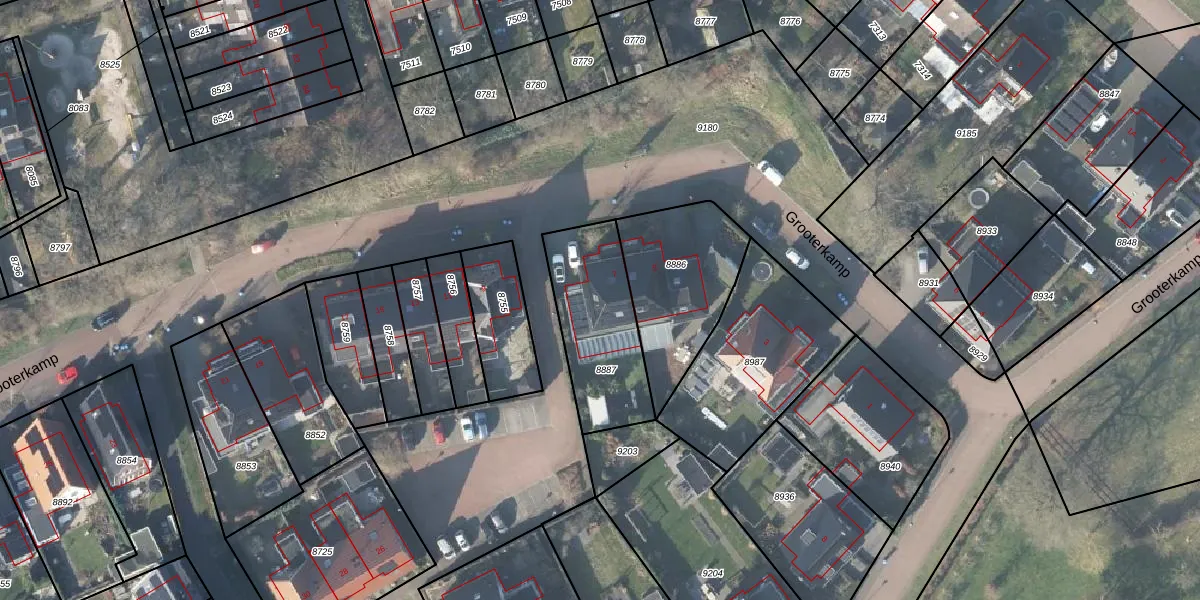 Het perceel waarop Grooterkamp 7 staat heeft een oppervlakte van 425 m². Dit is een groot perceel. De perceeloppervlakte wordt geregistreerd door het Kadaster. Gedetailleerde informatie over de maten van dit perceel kunt u vinden in het rapport Kadastrale kaart met maatvoering van Grooterkamp 7.