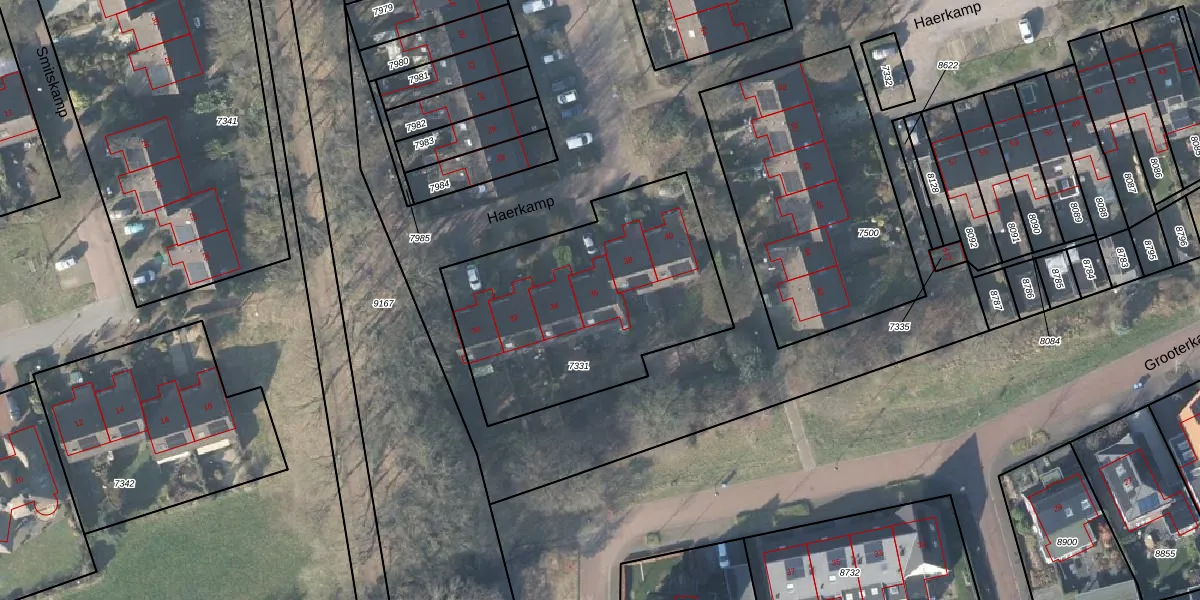 Het perceel waarop Haerkamp 36 staat heeft een oppervlakte van 1200 m². Dit is een zeer groot perceel. De perceeloppervlakte wordt geregistreerd door het Kadaster. Gedetailleerde informatie over de maten van dit perceel kunt u vinden in het rapport Kadastrale kaart met maatvoering van Haerkamp 36.