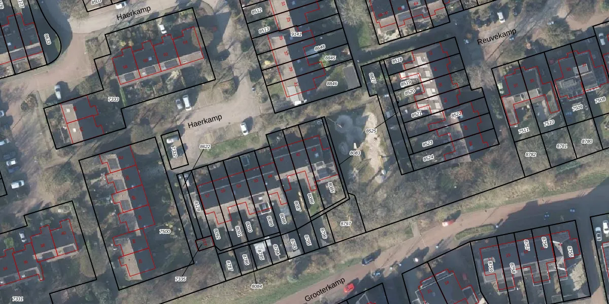 Het perceel waarop Haerkamp 45 staat heeft een oppervlakte van 163 m². Dit is een middelgroot perceel. De perceeloppervlakte wordt geregistreerd door het Kadaster. Gedetailleerde informatie over de maten van dit perceel kunt u vinden in het rapport Kadastrale kaart met maatvoering van Haerkamp 45.