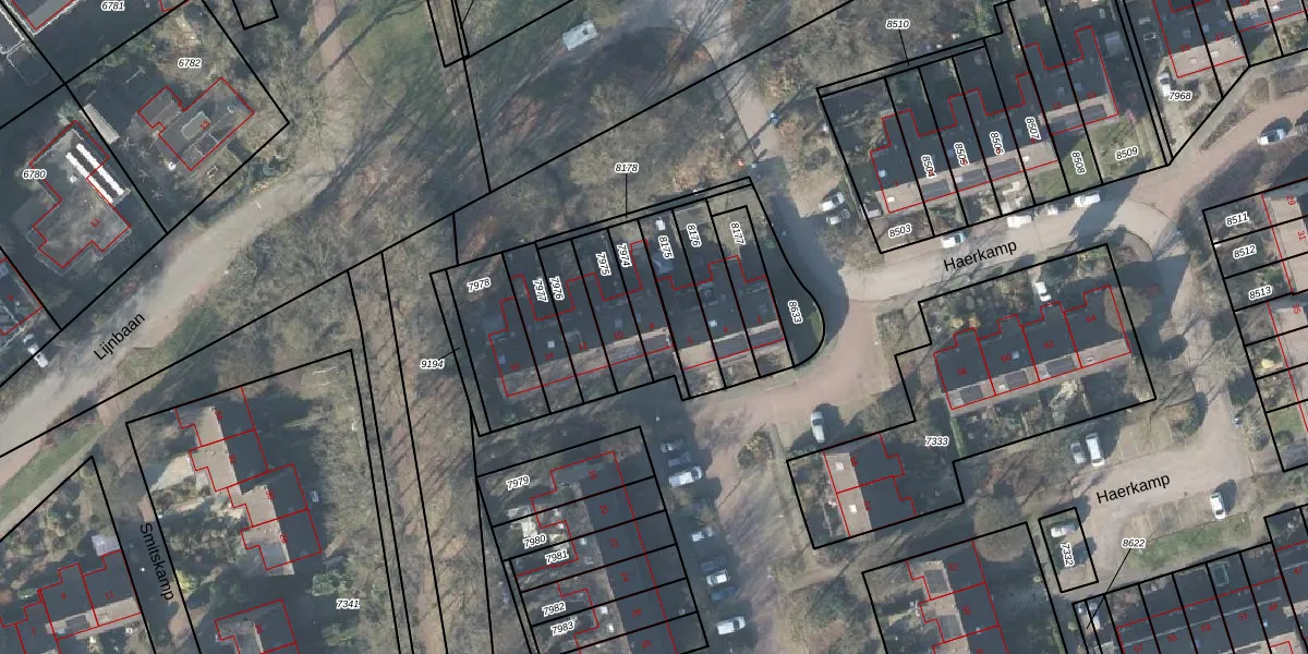 Gebruik de zoekbalk of klik op een perceel voor informatie over de adressen binnen dit perceel.