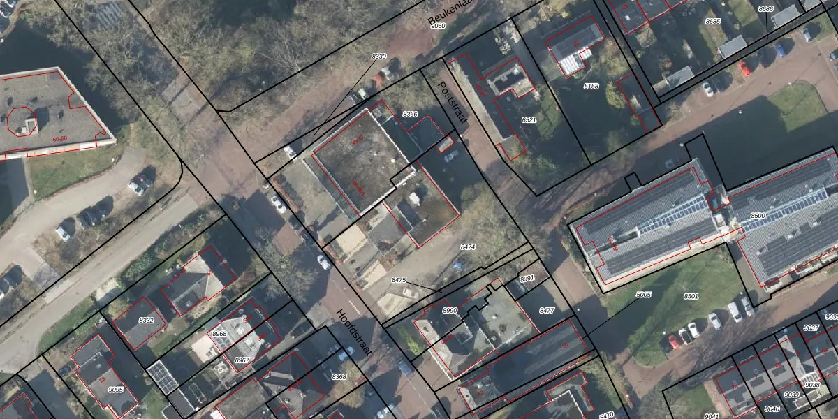 Gebruik de zoekbalk of klik op een perceel voor informatie over de adressen binnen dit perceel.