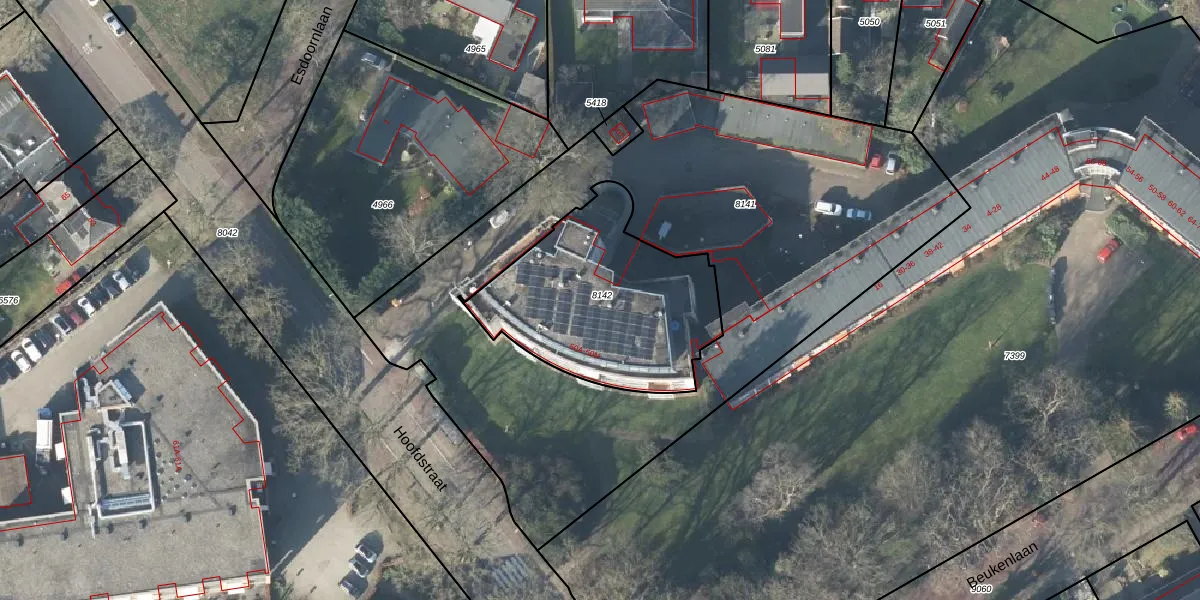 Het perceel waarop Hoofdstraat 50-i staat heeft een oppervlakte van 883 m². Dit is een groot perceel. De perceeloppervlakte wordt geregistreerd door het Kadaster. Gedetailleerde informatie over de maten van dit perceel kunt u vinden in het rapport Kadastrale kaart met maatvoering van Hoofdstraat 50-i.