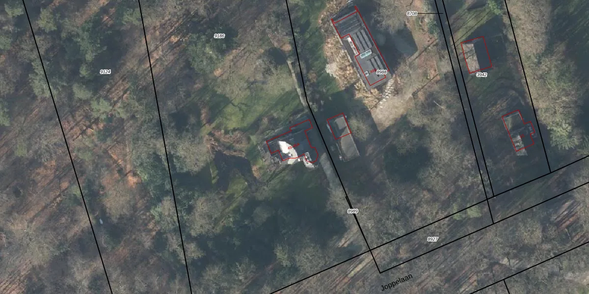 Het perceel waarop Joppelaan 49 staat heeft een oppervlakte van 9945 m². Dit is een zeer groot perceel. De perceeloppervlakte wordt geregistreerd door het Kadaster. Gedetailleerde informatie over de maten van dit perceel kunt u vinden in het rapport Kadastrale kaart met maatvoering van Joppelaan 49.