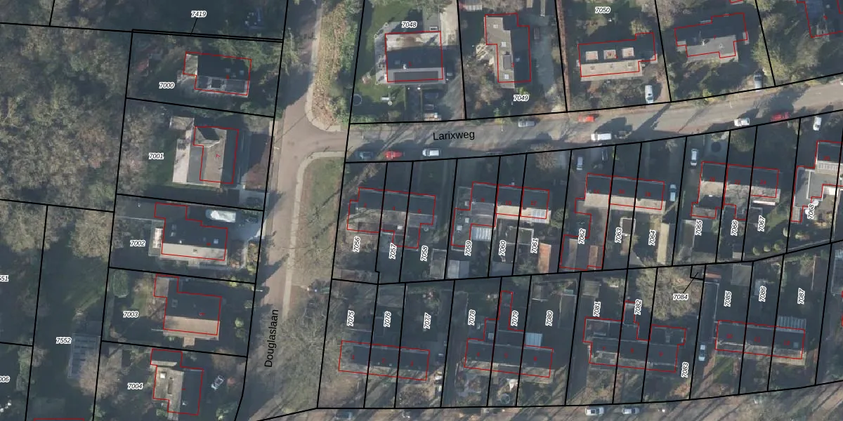Gebruik de zoekbalk of klik op een perceel voor informatie over de adressen binnen dit perceel.