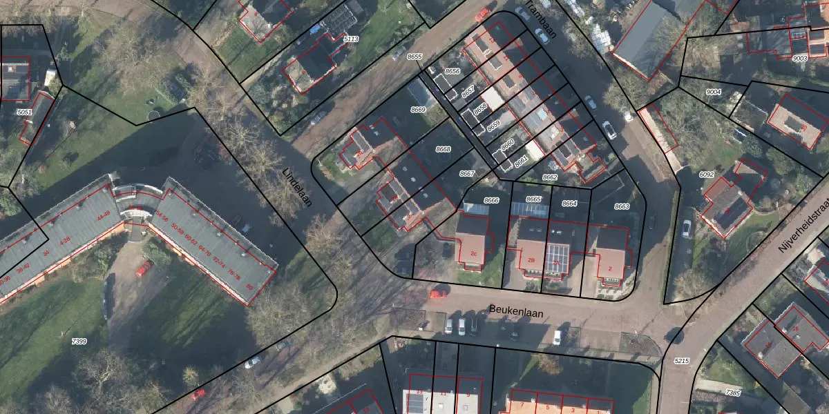 Gebruik de zoekbalk of klik op een perceel voor informatie over de adressen binnen dit perceel.