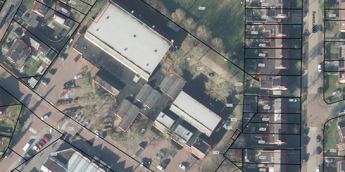 Het perceel waarop Molenweg 53-a staat heeft een oppervlakte van 8587 m². Dit is een zeer groot perceel. De perceeloppervlakte wordt geregistreerd door het Kadaster. Gedetailleerde informatie over de maten van dit perceel kunt u vinden in het rapport Kadastrale kaart met maatvoering van Molenweg 53-a.