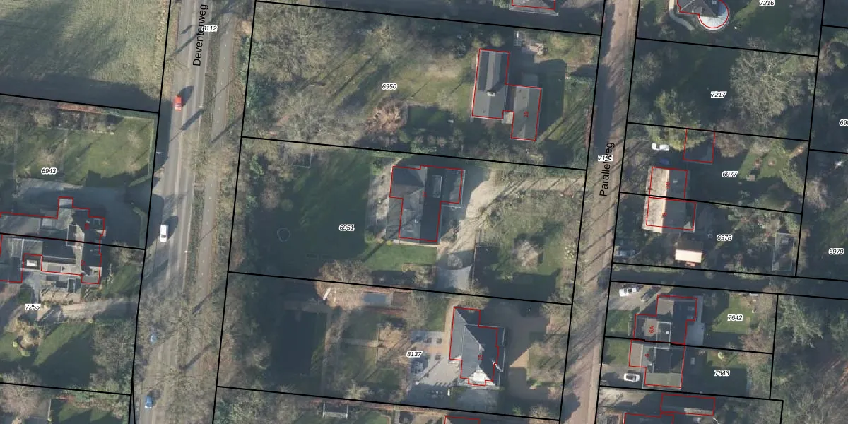 Het perceel waarop Parallelweg 17 staat heeft een oppervlakte van 2614 m². Dit is een zeer groot perceel. De perceeloppervlakte wordt geregistreerd door het Kadaster. Gedetailleerde informatie over de maten van dit perceel kunt u vinden in het rapport Kadastrale kaart met maatvoering van Parallelweg 17.