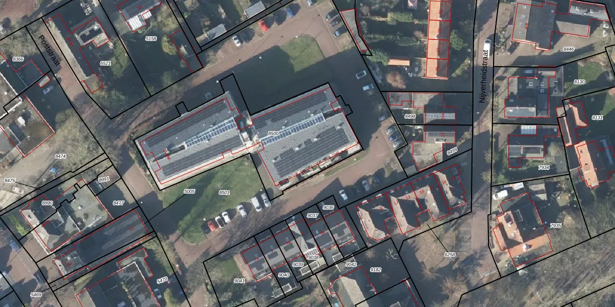 Het perceel waarop Poststraat 2-j staat heeft een oppervlakte van 1605 m². Dit is een zeer groot perceel. De perceeloppervlakte wordt geregistreerd door het Kadaster. Gedetailleerde informatie over de maten van dit perceel kunt u vinden in het rapport Kadastrale kaart met maatvoering van Poststraat 2-j.