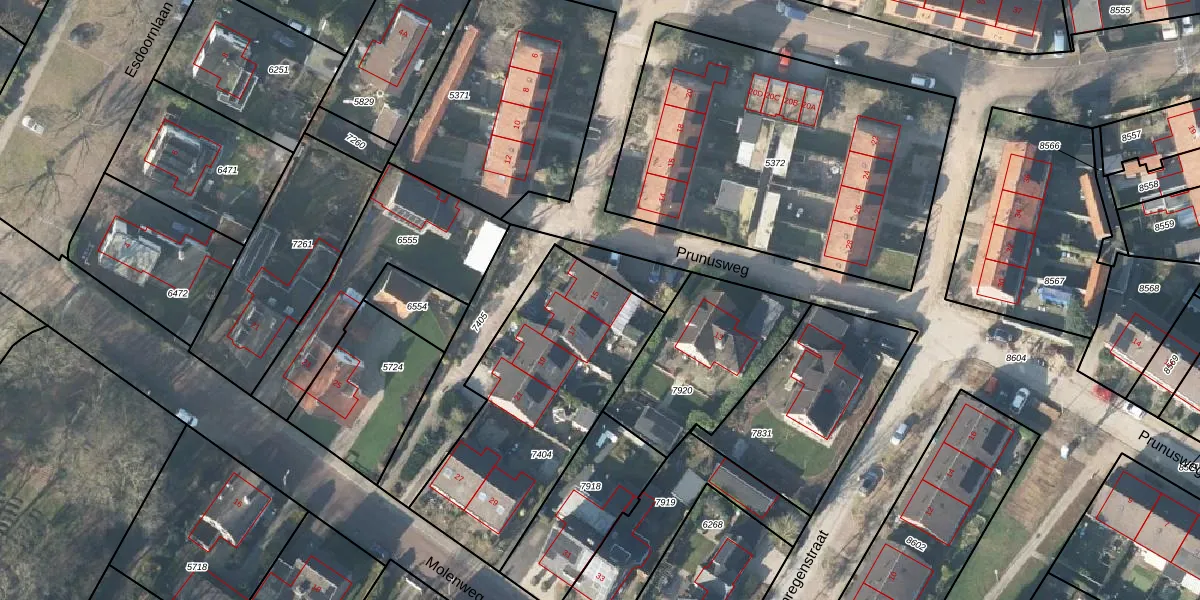Het perceel waarop Prunusweg 15 staat heeft een oppervlakte van 1010 m². Dit is een zeer groot perceel. De perceeloppervlakte wordt geregistreerd door het Kadaster. Gedetailleerde informatie over de maten van dit perceel kunt u vinden in het rapport Kadastrale kaart met maatvoering van Prunusweg 15.