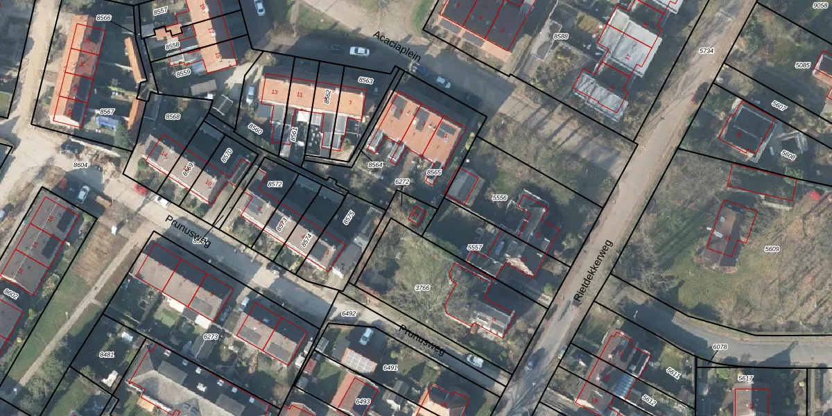 Gebruik de zoekbalk of klik op een perceel voor informatie over de adressen binnen dit perceel.