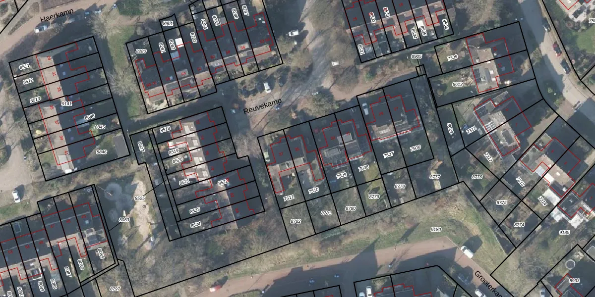 Gebruik de zoekbalk of klik op een perceel voor informatie over de adressen binnen dit perceel.
