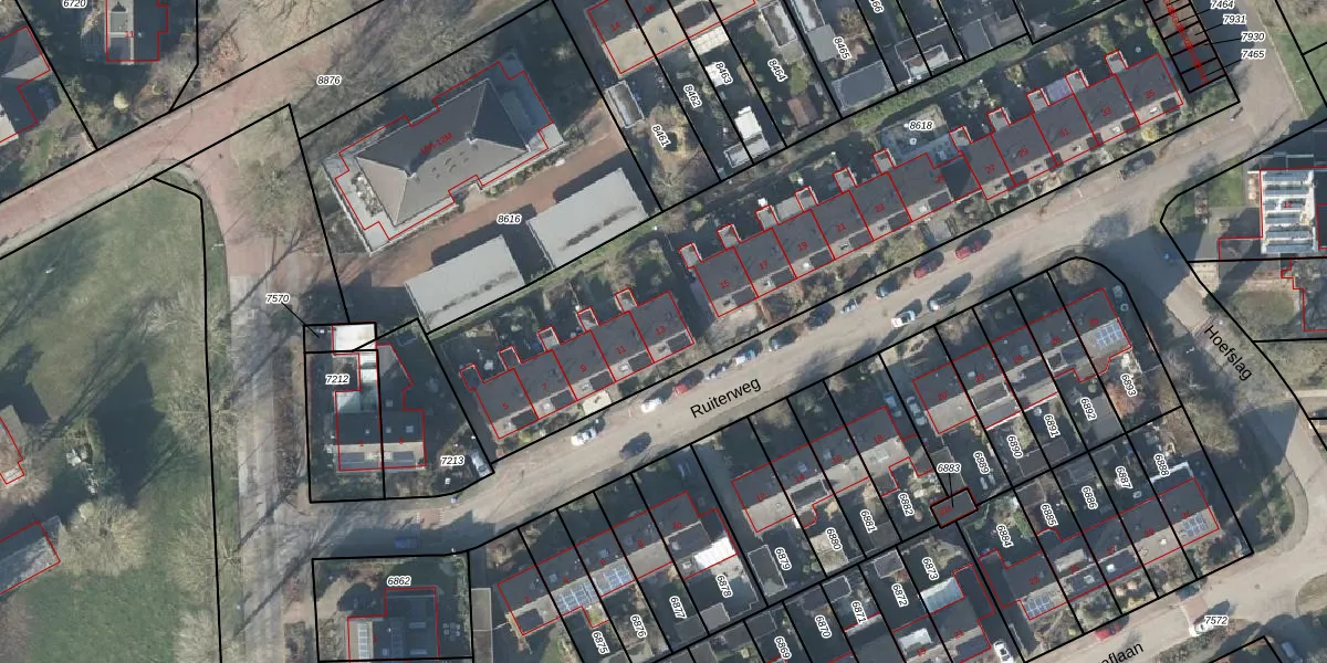 Het perceel waarop Ruiterweg 13 staat heeft een oppervlakte van 2742 m². Dit is een zeer groot perceel. De perceeloppervlakte wordt geregistreerd door het Kadaster. Gedetailleerde informatie over de maten van dit perceel kunt u vinden in het rapport Kadastrale kaart met maatvoering van Ruiterweg 13.