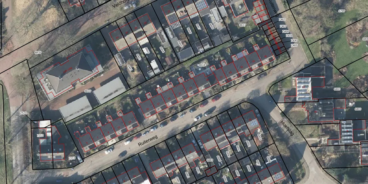 Het perceel waarop Ruiterweg 21 staat heeft een oppervlakte van 2742 m². Dit is een zeer groot perceel. De perceeloppervlakte wordt geregistreerd door het Kadaster. Gedetailleerde informatie over de maten van dit perceel kunt u vinden in het rapport Kadastrale kaart met maatvoering van Ruiterweg 21.