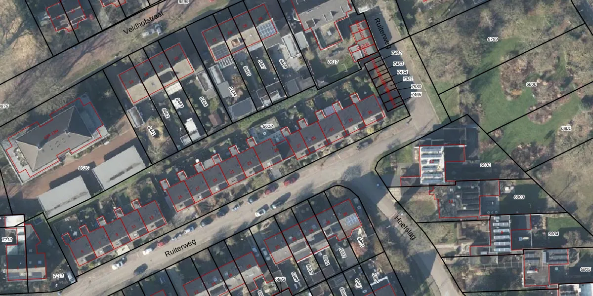 Het perceel waarop Ruiterweg 27 staat heeft een oppervlakte van 2742 m². Dit is een zeer groot perceel. De perceeloppervlakte wordt geregistreerd door het Kadaster. Gedetailleerde informatie over de maten van dit perceel kunt u vinden in het rapport Kadastrale kaart met maatvoering van Ruiterweg 27.