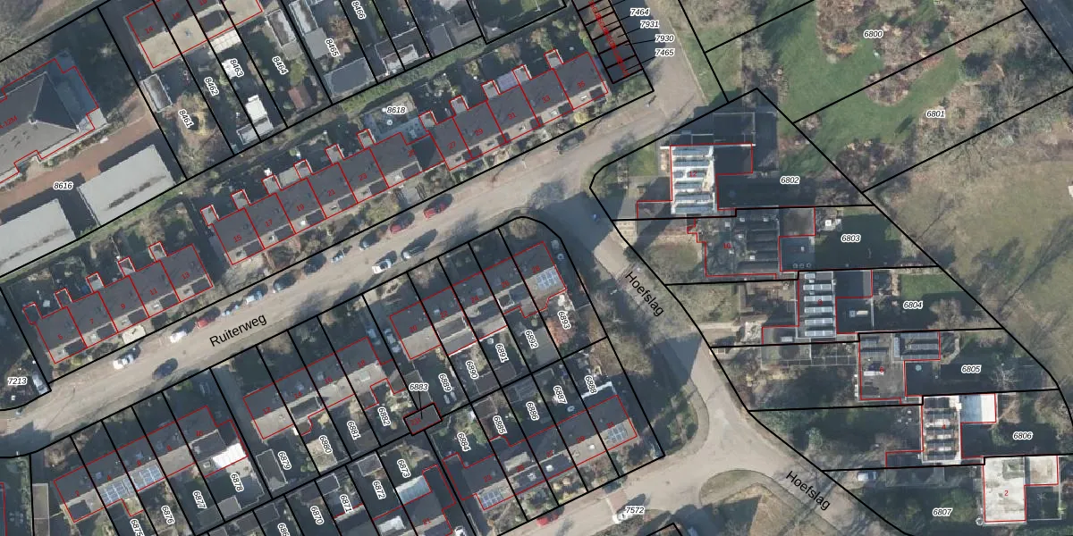 Het perceel waarop Ruiterweg 28 staat heeft een oppervlakte van 245 m². Dit is een middelgroot perceel. De perceeloppervlakte wordt geregistreerd door het Kadaster. Gedetailleerde informatie over de maten van dit perceel kunt u vinden in het rapport Kadastrale kaart met maatvoering van Ruiterweg 28.