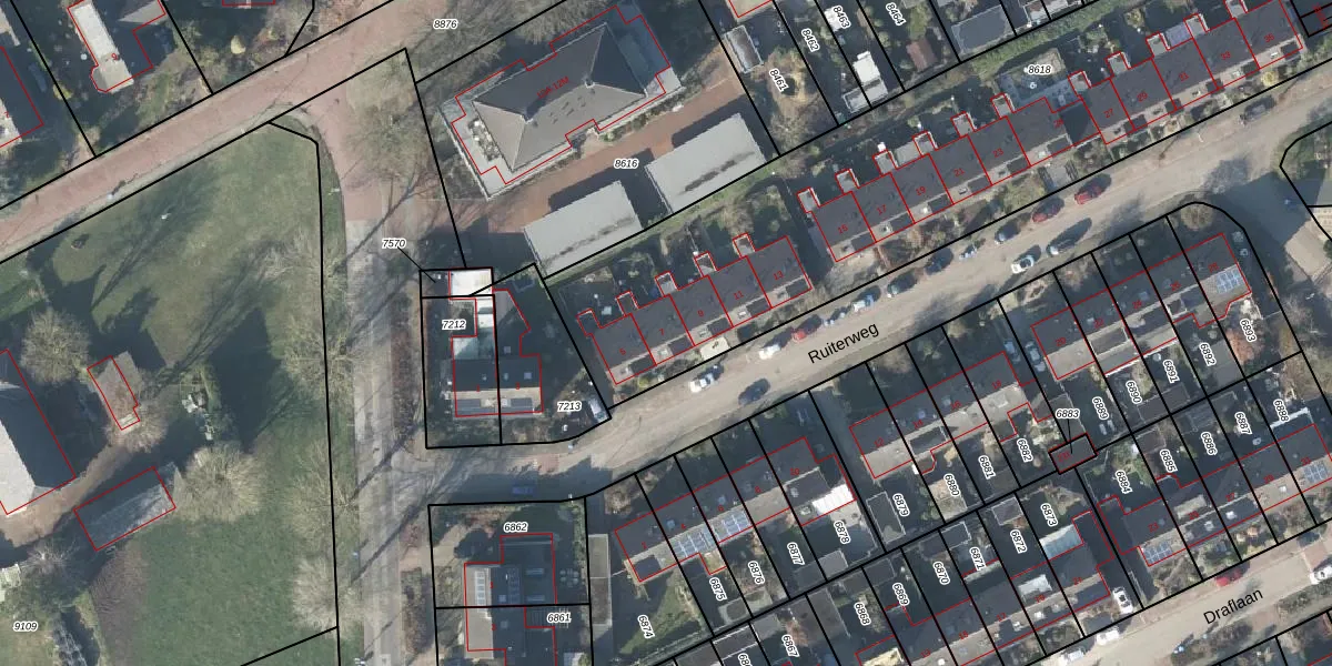 Het perceel waarop Ruiterweg 7 staat heeft een oppervlakte van 2742 m². Dit is een zeer groot perceel. De perceeloppervlakte wordt geregistreerd door het Kadaster. Gedetailleerde informatie over de maten van dit perceel kunt u vinden in het rapport Kadastrale kaart met maatvoering van Ruiterweg 7.