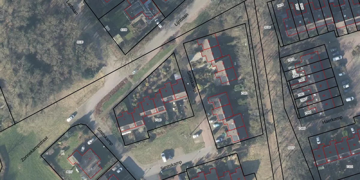 Het perceel waarop Smitskamp 11 staat heeft een oppervlakte van 1204 m². Dit is een zeer groot perceel. De perceeloppervlakte wordt geregistreerd door het Kadaster. Gedetailleerde informatie over de maten van dit perceel kunt u vinden in het rapport Kadastrale kaart met maatvoering van Smitskamp 11.