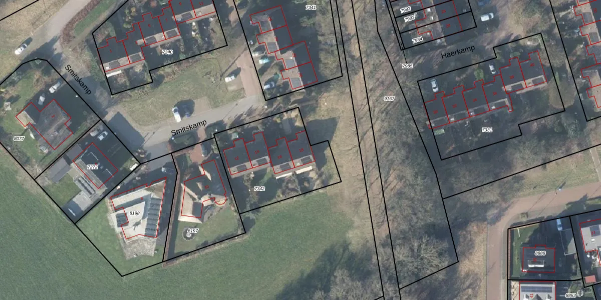 Het perceel waarop Smitskamp 18 staat heeft een oppervlakte van 908 m². Dit is een groot perceel. De perceeloppervlakte wordt geregistreerd door het Kadaster. Gedetailleerde informatie over de maten van dit perceel kunt u vinden in het rapport Kadastrale kaart met maatvoering van Smitskamp 18.