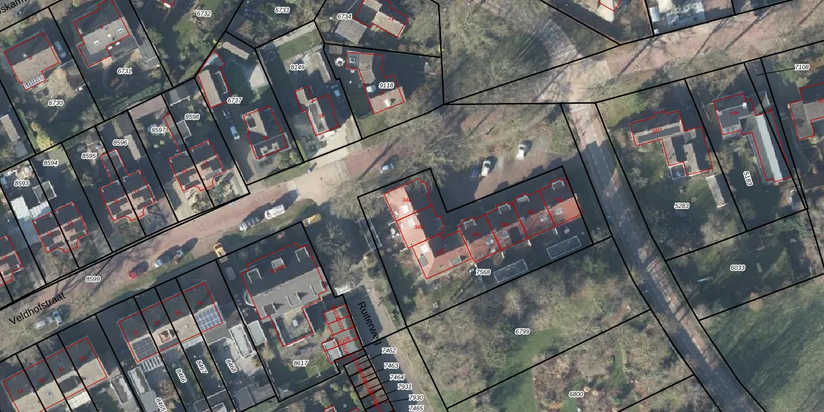 Het perceel waarop Veldhofstraat 34-a staat heeft een oppervlakte van 1275 m². Dit is een zeer groot perceel. De perceeloppervlakte wordt geregistreerd door het Kadaster. Gedetailleerde informatie over de maten van dit perceel kunt u vinden in het rapport Kadastrale kaart met maatvoering van Veldhofstraat 34-a.