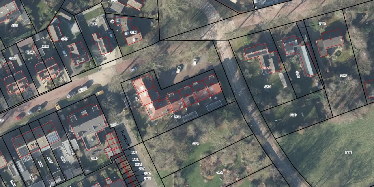 Het perceel waarop Veldhofstraat 34-e staat heeft een oppervlakte van 1275 m². Dit is een zeer groot perceel. De perceeloppervlakte wordt geregistreerd door het Kadaster. Gedetailleerde informatie over de maten van dit perceel kunt u vinden in het rapport Kadastrale kaart met maatvoering van Veldhofstraat 34-e.