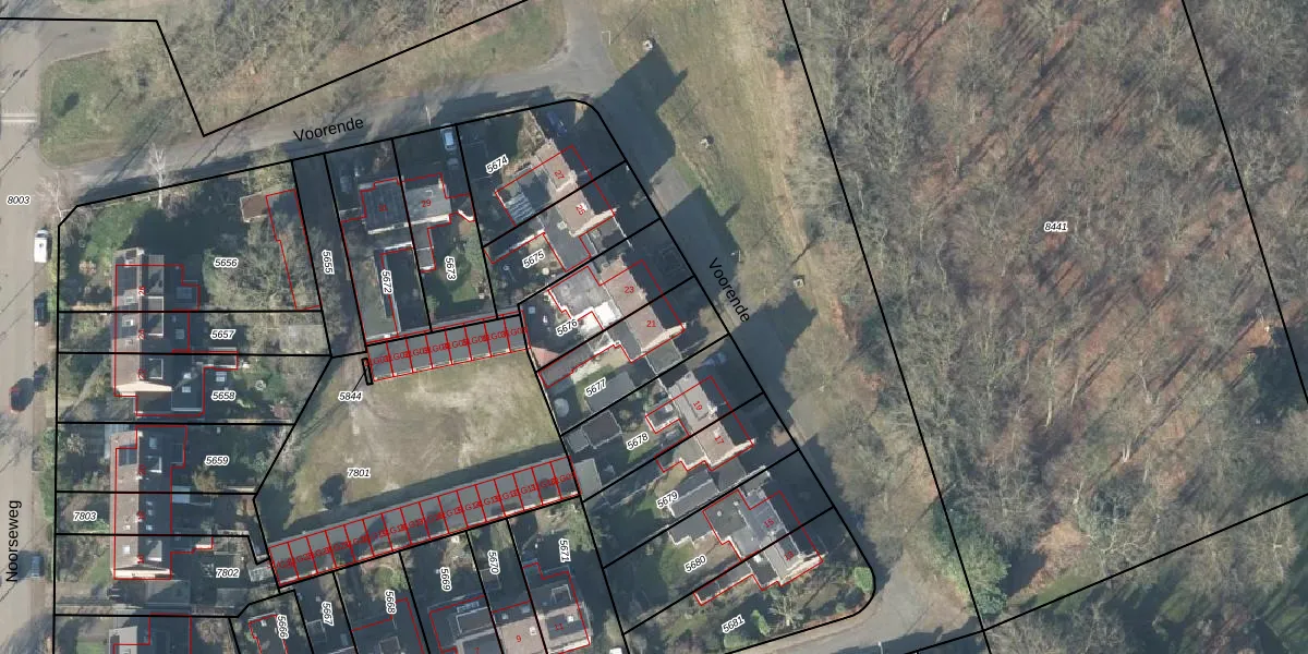 Het perceel waarop Voorende 21 staat heeft een oppervlakte van 296 m². Dit is een middelgroot perceel. De perceeloppervlakte wordt geregistreerd door het Kadaster. Gedetailleerde informatie over de maten van dit perceel kunt u vinden in het rapport Kadastrale kaart met maatvoering van Voorende 21.