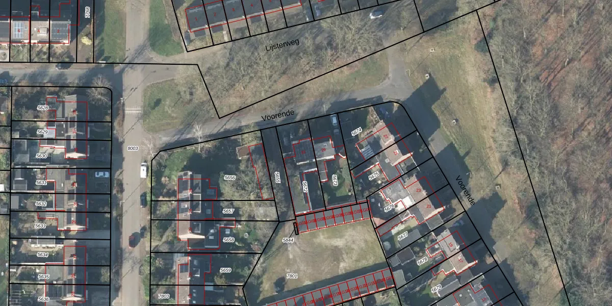 Gebruik de zoekbalk of klik op een perceel voor informatie over de adressen binnen dit perceel.