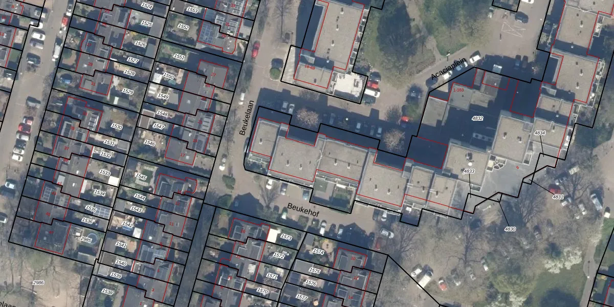 Het perceel waarop Acaciaplein 145 staat heeft een oppervlakte van 4434 m². Dit is een zeer groot perceel. De perceeloppervlakte wordt geregistreerd door het Kadaster. Gedetailleerde informatie over de maten van dit perceel kunt u vinden in het rapport Kadastrale kaart met maatvoering van Acaciaplein 145.