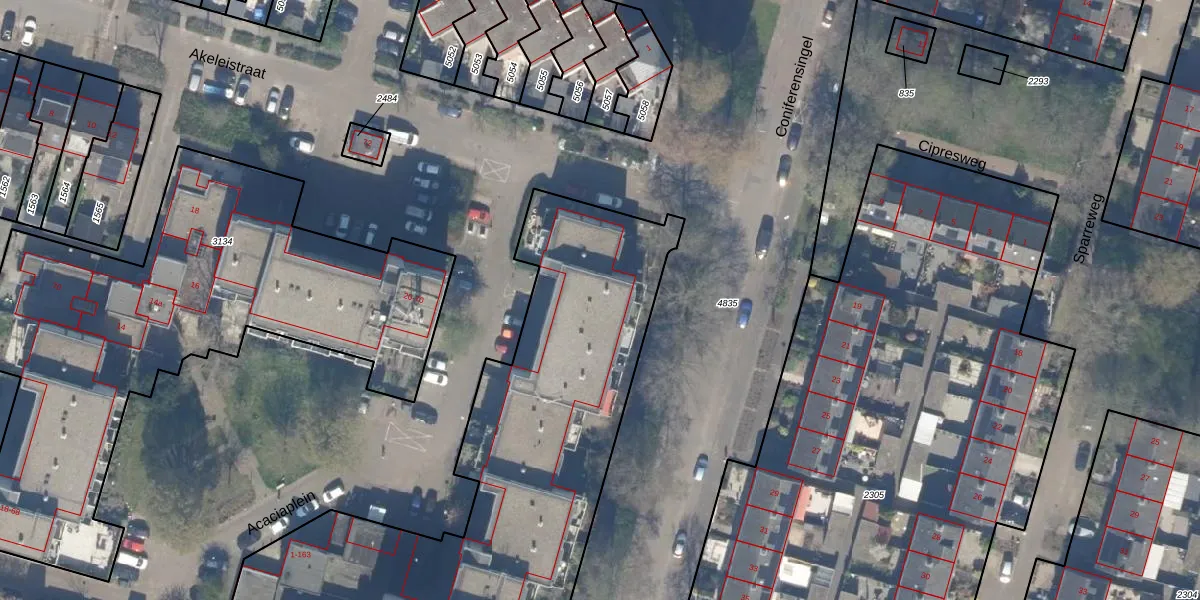 Het perceel waarop Acaciaplein 15 staat heeft een oppervlakte van 4434 m². Dit is een zeer groot perceel. De perceeloppervlakte wordt geregistreerd door het Kadaster. Gedetailleerde informatie over de maten van dit perceel kunt u vinden in het rapport Kadastrale kaart met maatvoering van Acaciaplein 15.