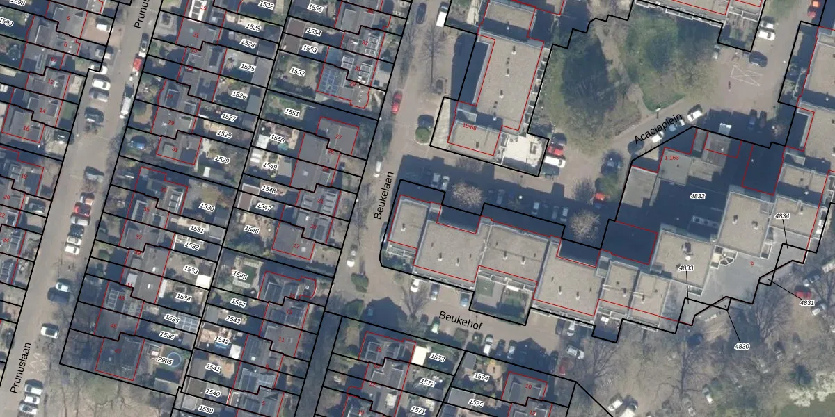 Het perceel waarop Acaciaplein 163 staat heeft een oppervlakte van 4434 m². Dit is een zeer groot perceel. De perceeloppervlakte wordt geregistreerd door het Kadaster. Gedetailleerde informatie over de maten van dit perceel kunt u vinden in het rapport Kadastrale kaart met maatvoering van Acaciaplein 163.