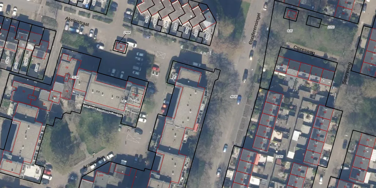 Het perceel waarop Acaciaplein 5 staat heeft een oppervlakte van 4434 m². Dit is een zeer groot perceel. De perceeloppervlakte wordt geregistreerd door het Kadaster. Gedetailleerde informatie over de maten van dit perceel kunt u vinden in het rapport Kadastrale kaart met maatvoering van Acaciaplein 5.