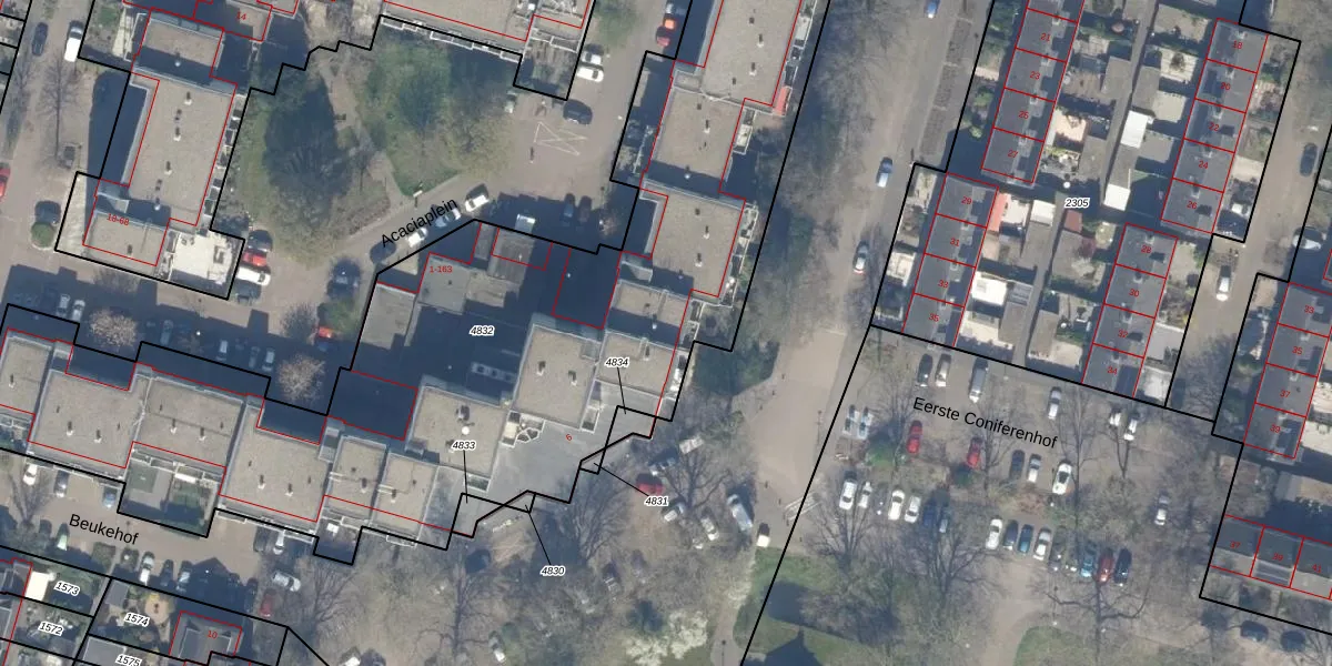 Acaciaplein 83 is gelegen op kadastraal perceel GDA01M4832. Deze kadastrale aanduiding is uniek en wordt gebruikt door het Kadaster om eigendomsrechten en andere zakelijke rechten vast te leggen. Het perceel maakt onderdeel uit van de kadastrale gemeente Gouda.