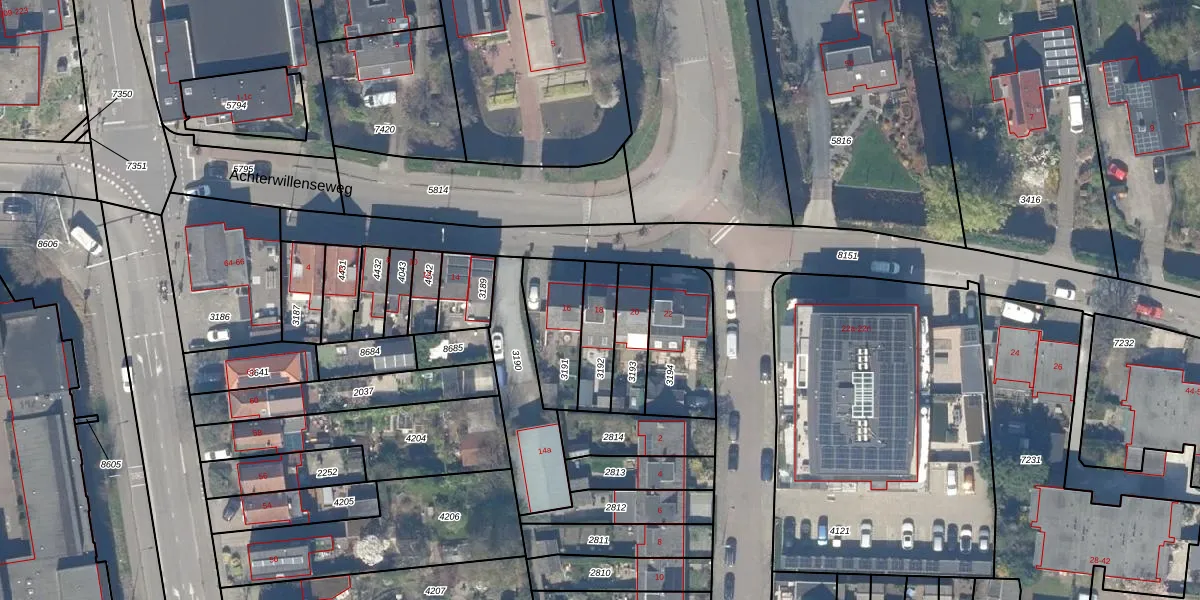 Achterwillenseweg 18 is gelegen op kadastraal perceel GDA01K3192. Deze kadastrale aanduiding is uniek en wordt gebruikt door het Kadaster om eigendomsrechten en andere zakelijke rechten vast te leggen. Het perceel maakt onderdeel uit van de kadastrale gemeente Gouda.