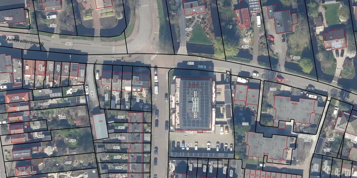 Achterwillenseweg 22-e is gelegen op kadastraal perceel GDA01K4121. Deze kadastrale aanduiding is uniek en wordt gebruikt door het Kadaster om eigendomsrechten en andere zakelijke rechten vast te leggen. Het perceel maakt onderdeel uit van de kadastrale gemeente Gouda.