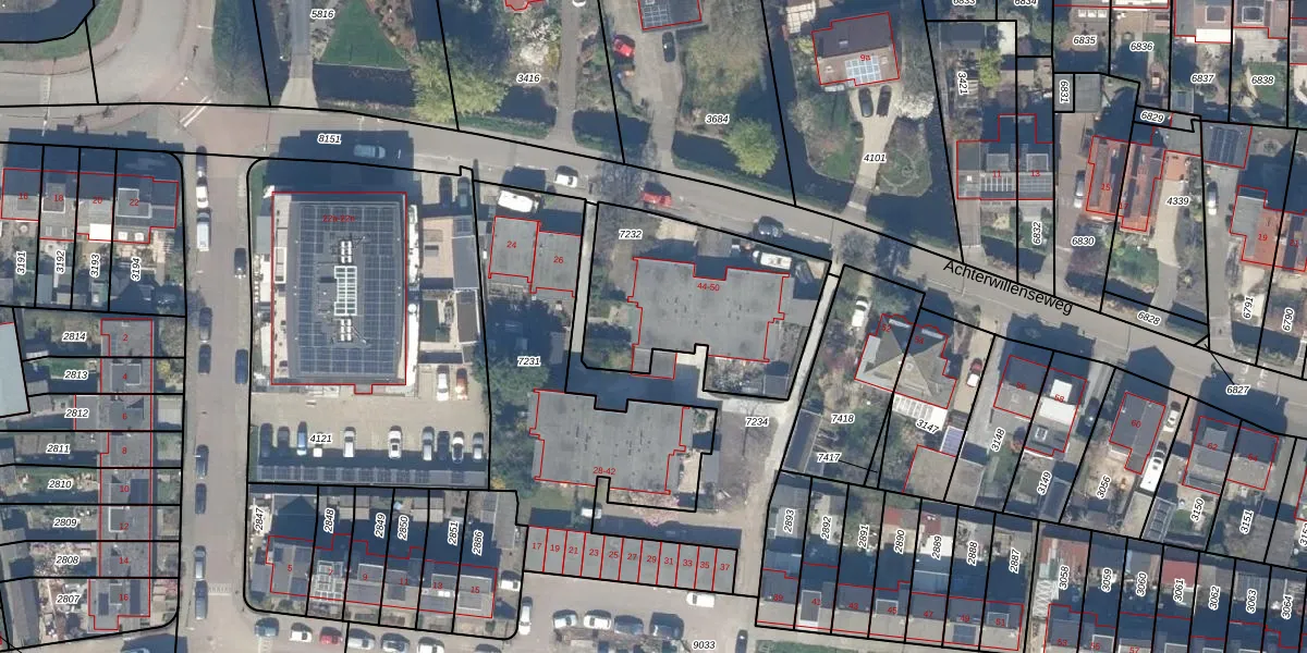 Achterwillenseweg 44 is gelegen op kadastraal perceel GDA01K7232. Deze kadastrale aanduiding is uniek en wordt gebruikt door het Kadaster om eigendomsrechten en andere zakelijke rechten vast te leggen. Het perceel maakt onderdeel uit van de kadastrale gemeente Gouda.