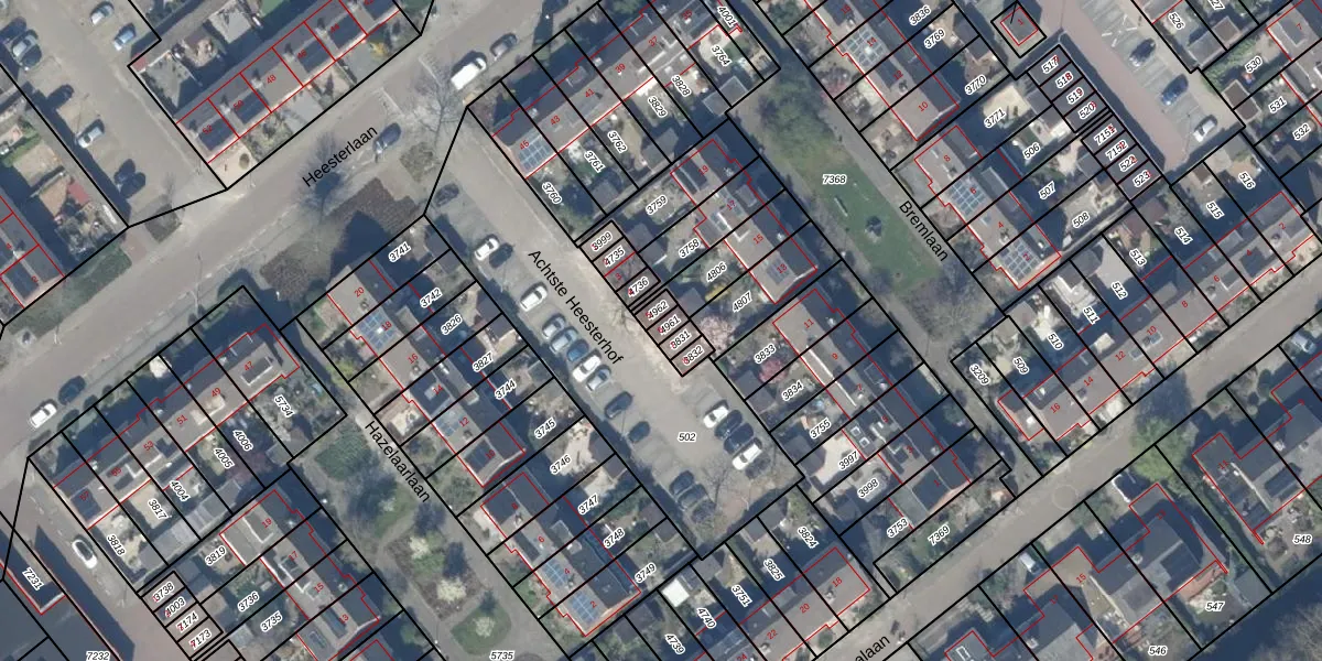 Het perceel waarop Achtste Heesterhof 6 staat heeft een oppervlakte van 18 m². Dit is een klein perceel. De perceeloppervlakte wordt geregistreerd door het Kadaster. Gedetailleerde informatie over de maten van dit perceel kunt u vinden in het rapport Kadastrale kaart met maatvoering van Achtste Heesterhof 6.