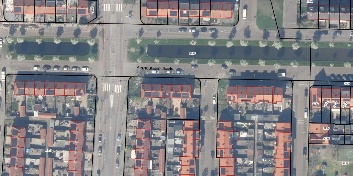 Aernout Drostkade 15 is gelegen op kadastraal perceel GDA01F3653. Deze kadastrale aanduiding is uniek en wordt gebruikt door het Kadaster om eigendomsrechten en andere zakelijke rechten vast te leggen. Het perceel maakt onderdeel uit van de kadastrale gemeente Gouda.