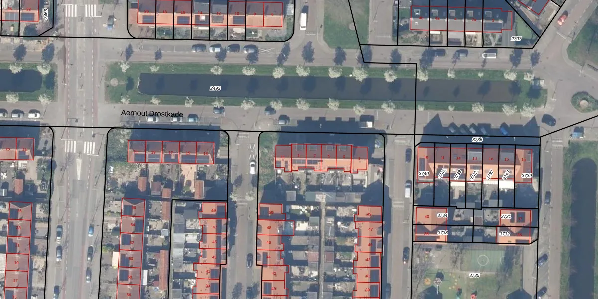 Aernout Drostkade 9 is gelegen op kadastraal perceel GDA01F2399. Deze kadastrale aanduiding is uniek en wordt gebruikt door het Kadaster om eigendomsrechten en andere zakelijke rechten vast te leggen. Het perceel maakt onderdeel uit van de kadastrale gemeente Gouda.