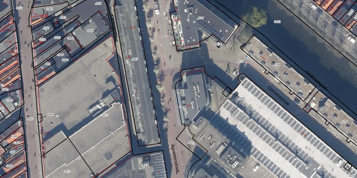 Het perceel waarop Agnietenstraat 46 staat heeft een oppervlakte van 9736 m². Dit is een zeer groot perceel. De perceeloppervlakte wordt geregistreerd door het Kadaster. Gedetailleerde informatie over de maten van dit perceel kunt u vinden in het rapport Kadastrale kaart met maatvoering van Agnietenstraat 46.