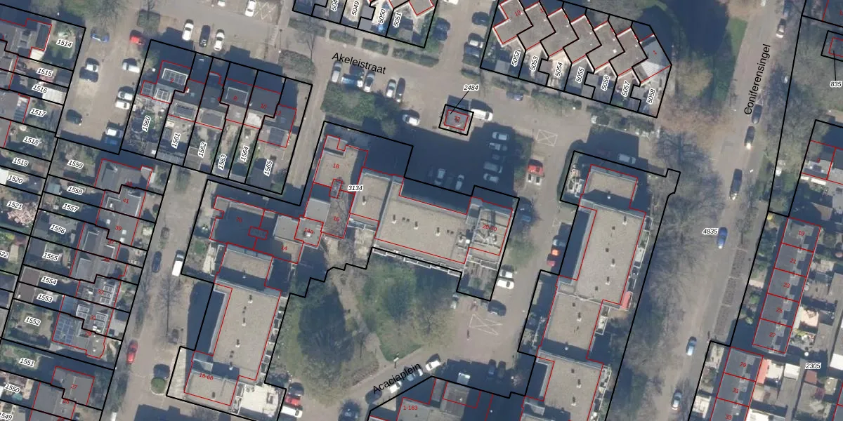 Het perceel waarop Akeleistraat 26 staat heeft een oppervlakte van 2510 m². Dit is een zeer groot perceel. De perceeloppervlakte wordt geregistreerd door het Kadaster. Gedetailleerde informatie over de maten van dit perceel kunt u vinden in het rapport Kadastrale kaart met maatvoering van Akeleistraat 26.